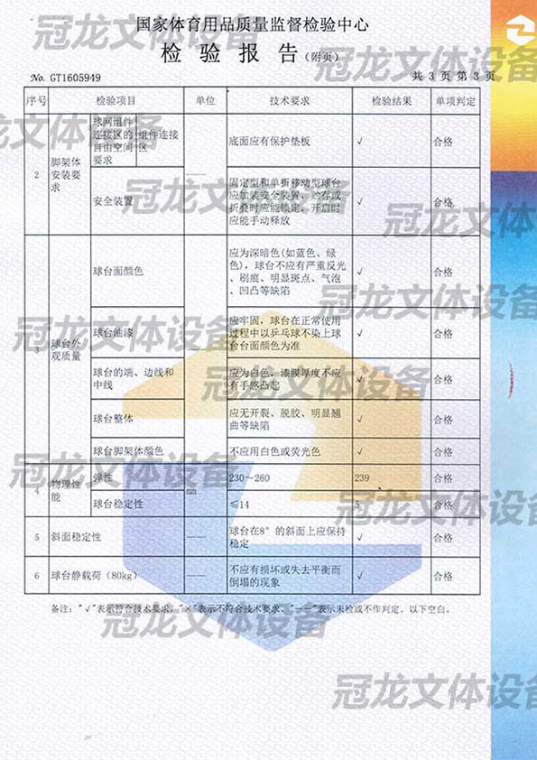 乒乓球台检验报告